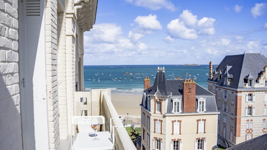 À seulement quelques pas de la Grande Plage, « La Résidence » est le nom de cet immeuble historique et de caractère. Construit au début du XXe siècle, il a conservé le charme de l’époque en sachant s’adapter aux exigences modernes de confort. Son architecture et ses volumes évoquent parfaitement les résidences balnéaires typiques de la Côte d’Émeraude.