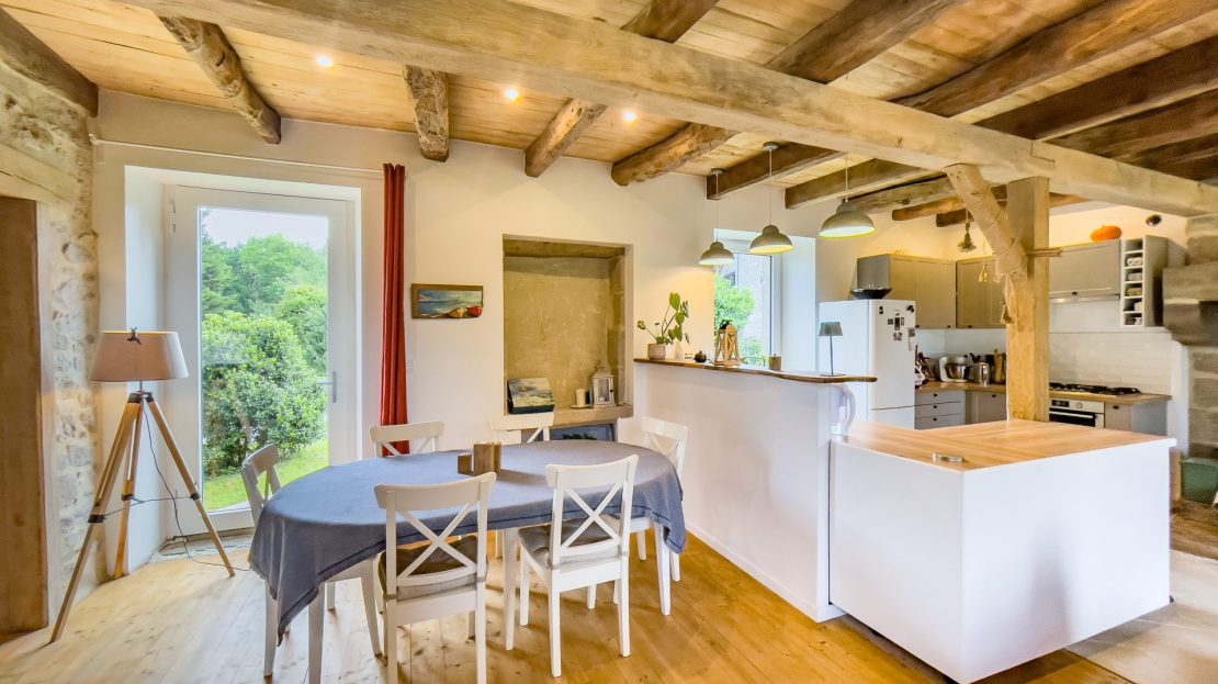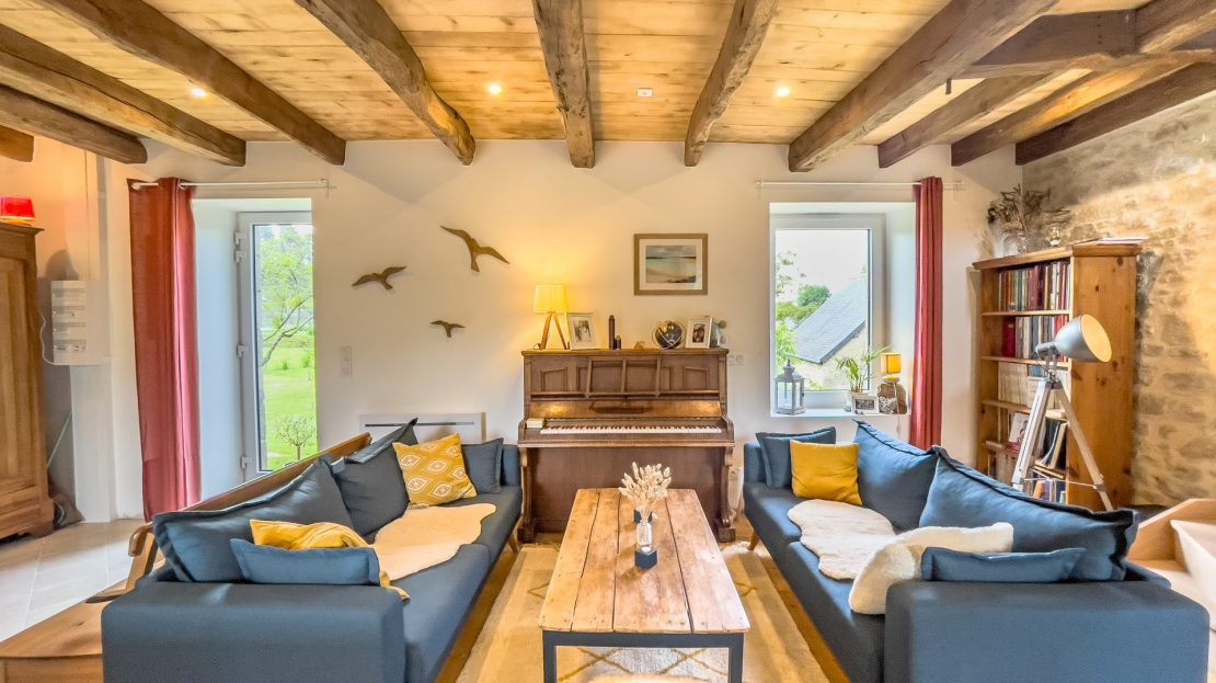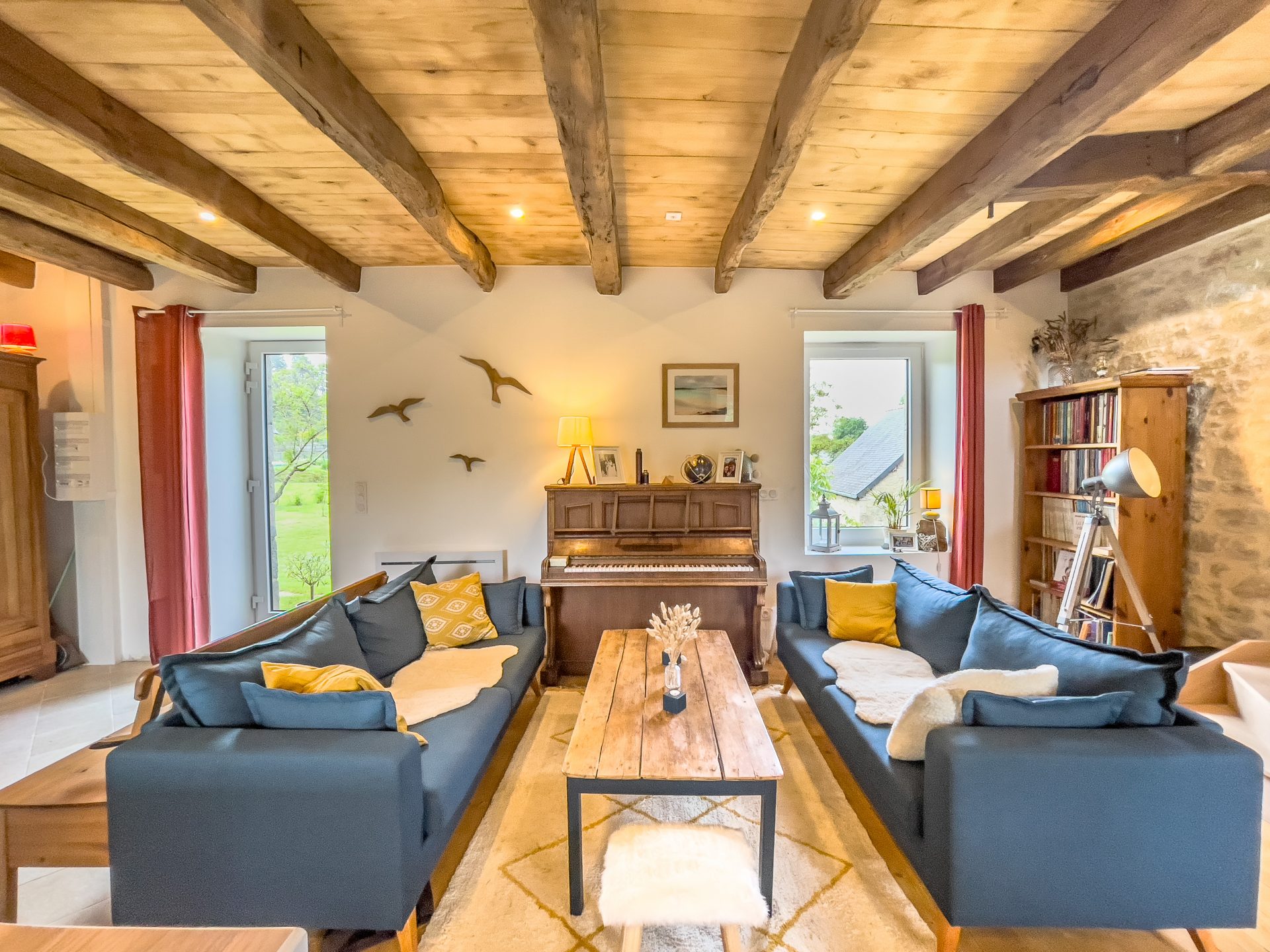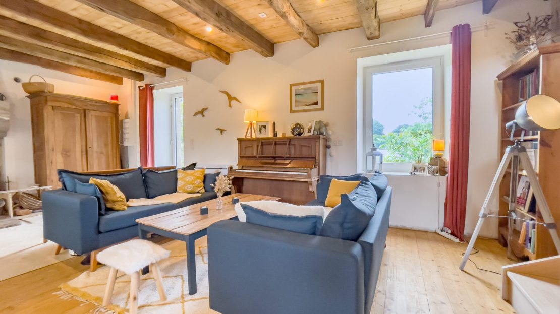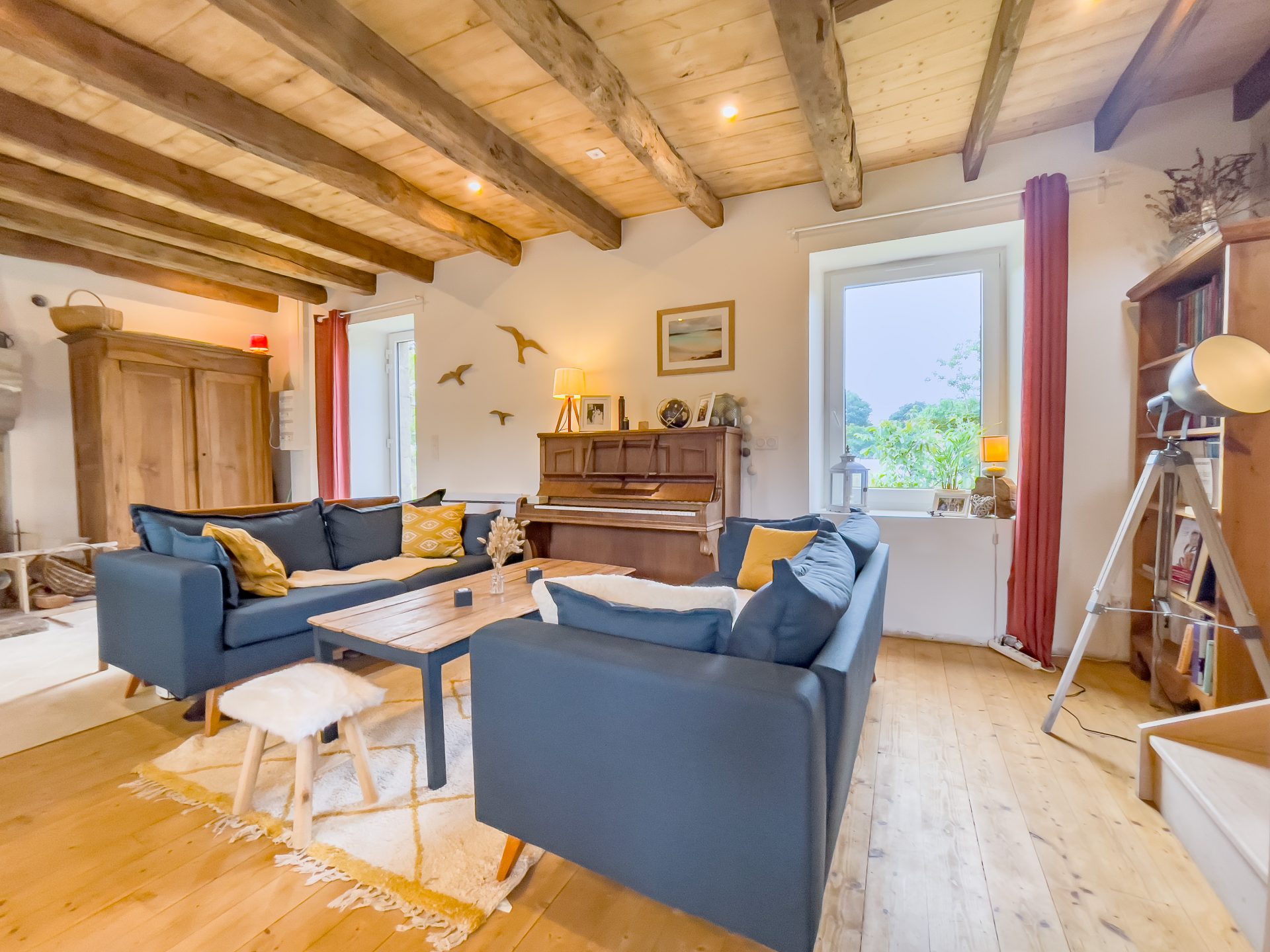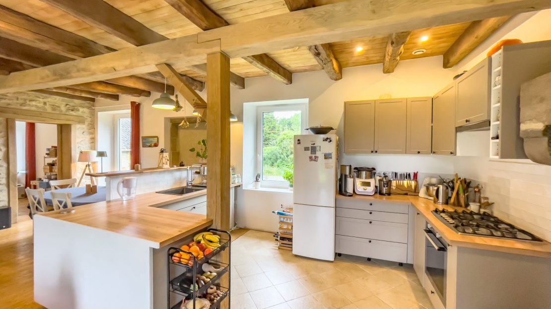 Rénovée avec goût, la maison révèle un cachet incroyable. La cuisine, entièrement aménagée et équipée, est ouverte sur le séjour-salon. Pièce maitresse de ce bel espace de vie, la magnifique cheminée en pierres double foyer, est mise en valeur par les anciens vestiges du passé (pierres naturelles, poutres apparentes, etc.). Un deuxième salon TV ou chambre, une buanderie et des WC indépendants complètent le rez-de-chaussée (possibilité de transformer ces pièces en suite parentale : chambre avec salle d’eau priative, dressing et WC).
